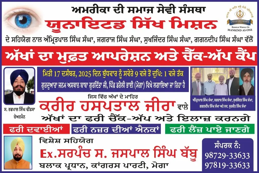 Under the United Sikh Mission’s Mission For Vision, Free Eye Health Care Camps will be organized in villages of Punjab from September 2024 to March 2025. During this period, nearly 60 camps will be held, offering free eye checkups, free medicines, and spectacles. Eye surgeries will be performed at hospitals for free for all patients who register at the camps. The camps will cover a population of 600 villages in rural Punjab, expanding the foundation’s efforts to reach 100 more villages than last year.