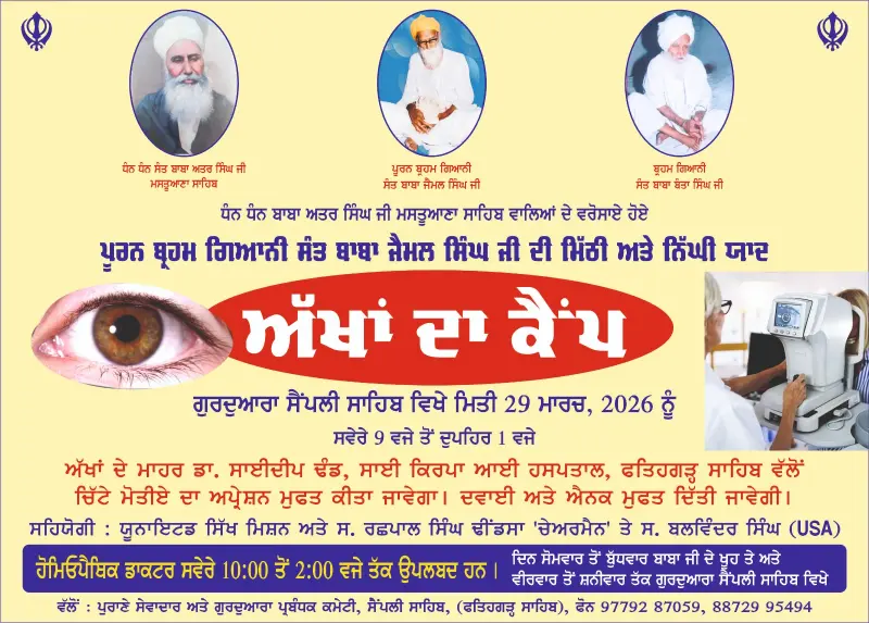 | 13 | 2026 | February | 20 | Punjab | Jalandhar | Salarpur | Family of Late S Sadhu Singh and Gurmit Kaur | 355 | 560 | 207 | 29 |